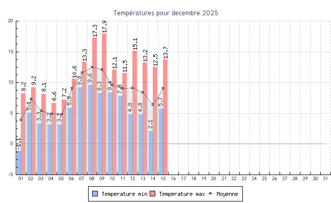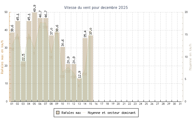 | Total | -1.1 °C | 17.9 °C | 8.2 °C | 11.7 km/h (49.9 km/h) | SSE |
